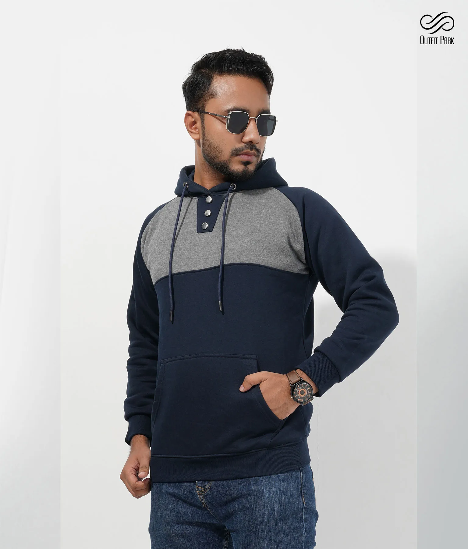 Classic Comfort Hoodie – Men's Edition (Navy Blue & Ash)