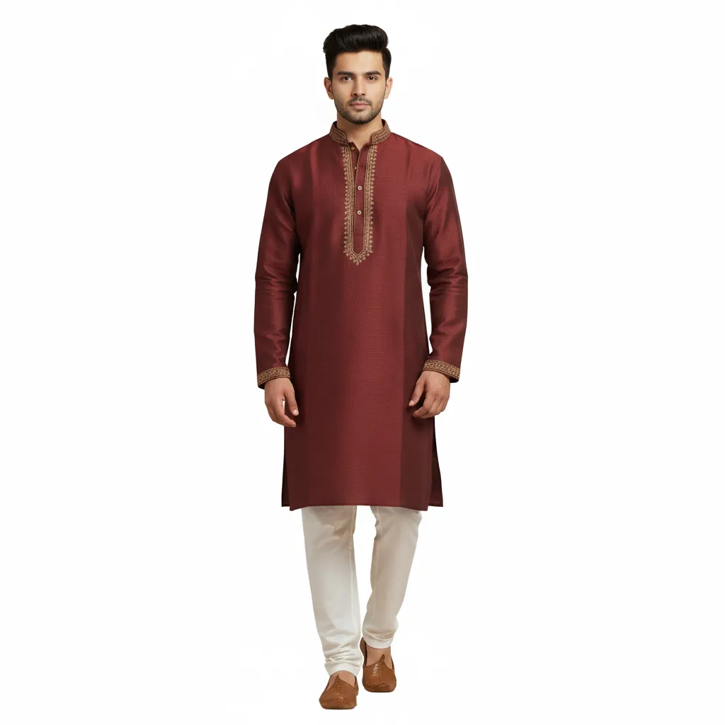 Men's Maroon Silk Blend Panjabi