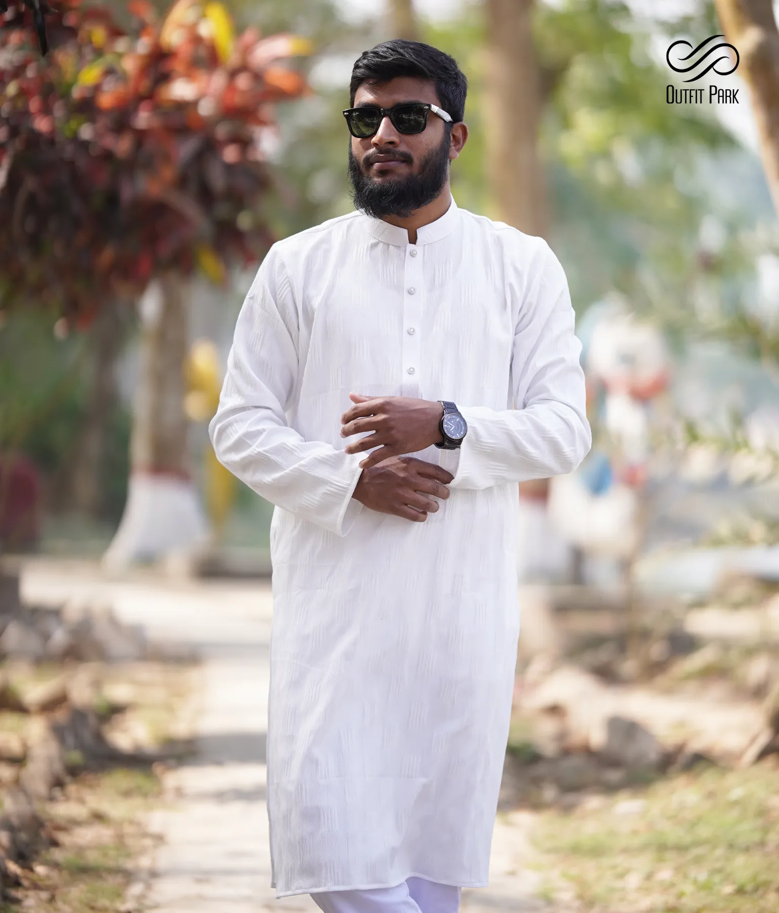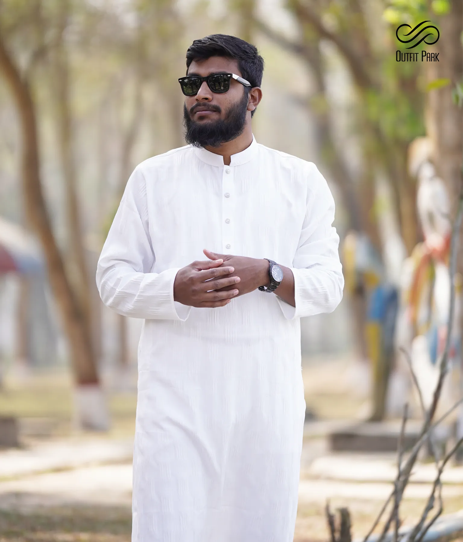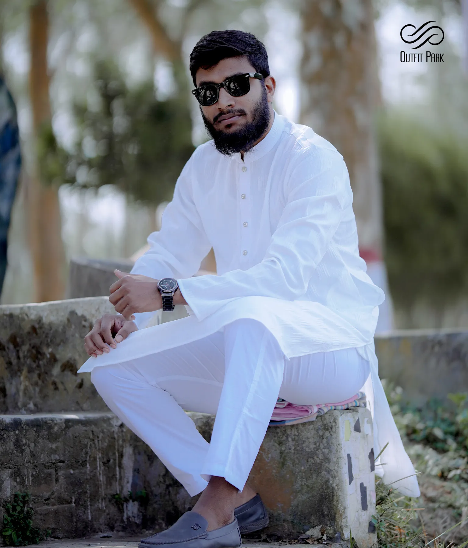 Royal White Luxury Cotton Panjabi – Signature Edition